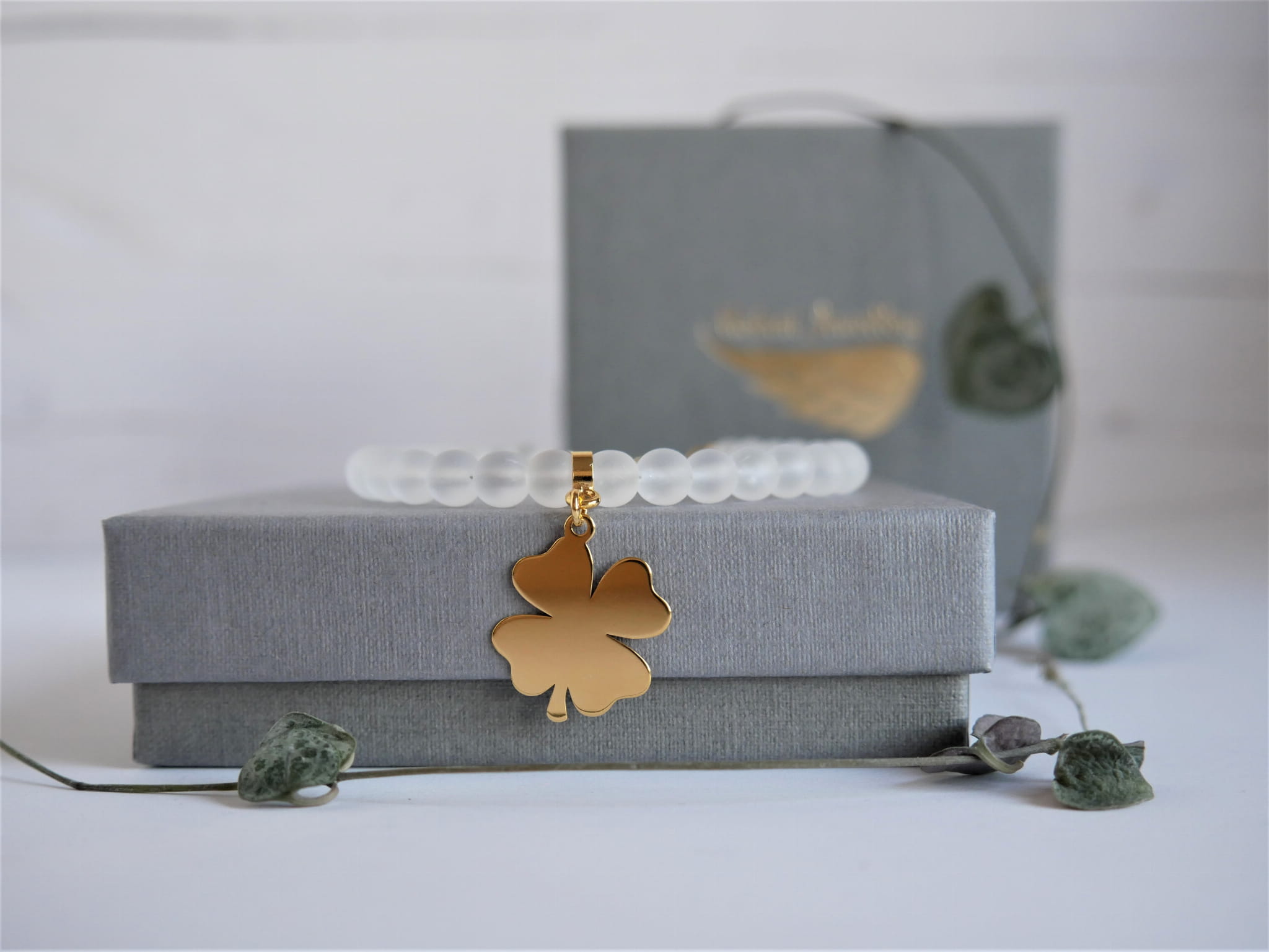 Bransoletka prezent dla Świadkowej z koniczynką z dowolnym grawerem - Biżuteria personalizowana