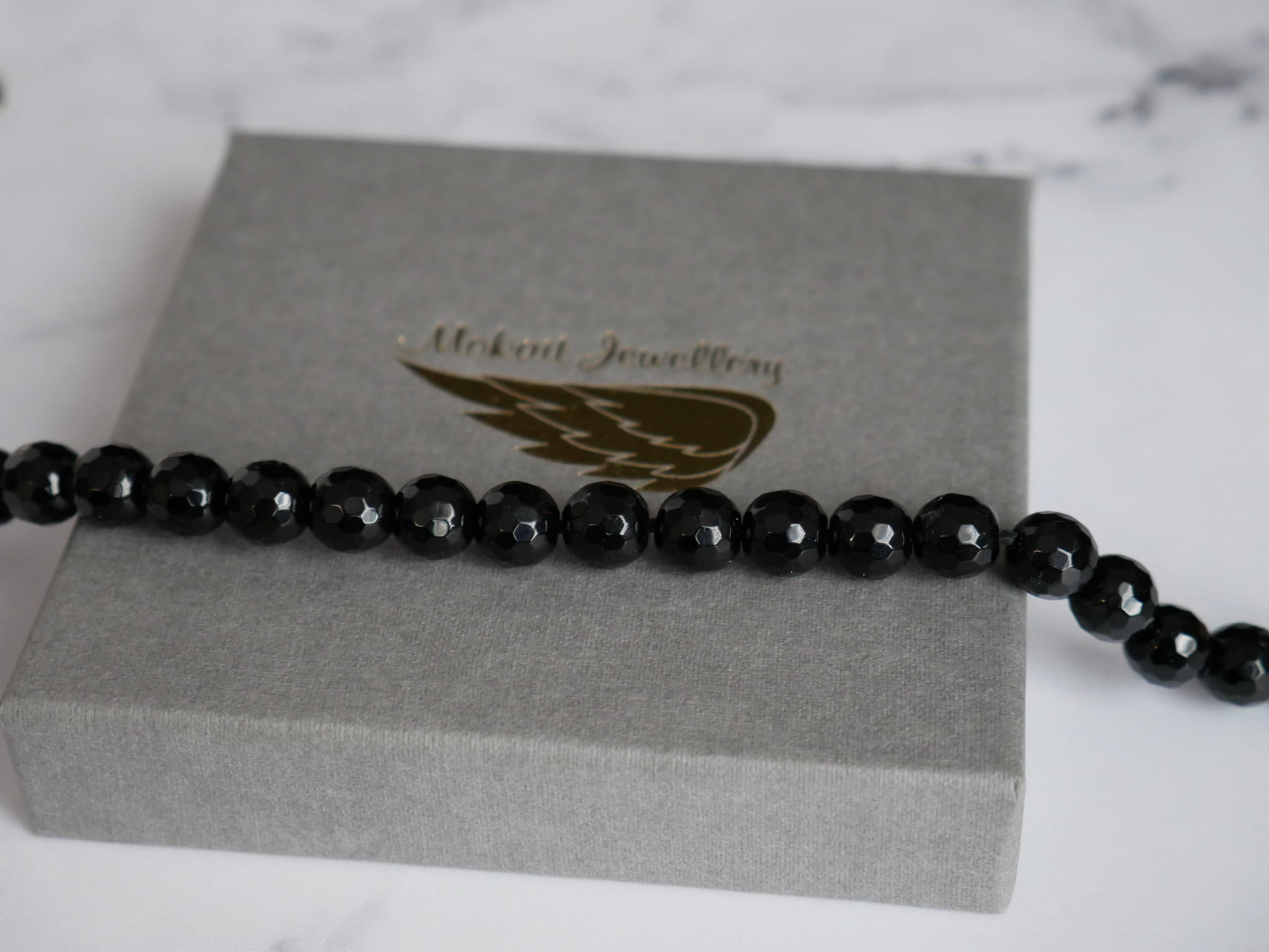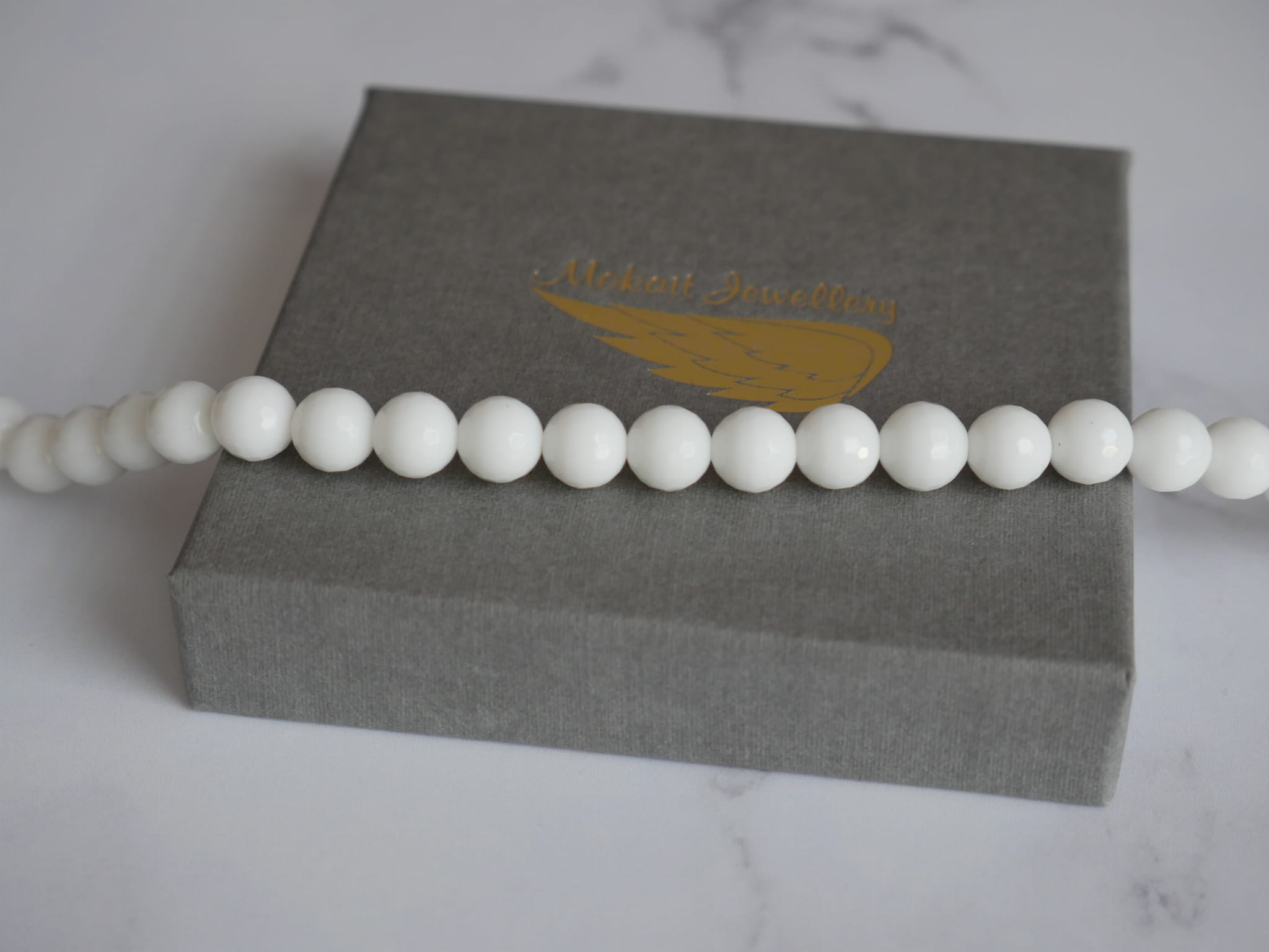 - Bransoletka zapakowana w szare pudełeczko ze złotym Logo.